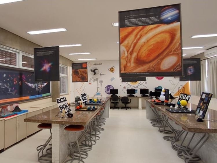 Estudantes do 6º ano da Escola Sesi de Osvaldo Cruz, apresentaram uma Estação Astronômica a colegas e familiares durante uma atividade que integrou os componentes de Programação e Robótica, Geografia e Ciências. A ação foi desenvolvida pelos professores Andressa Silva Rezende, Bruno Ramos Cavalheiro e Márcia Regina Galheira, em parceria com o Espaço Maker da escola.