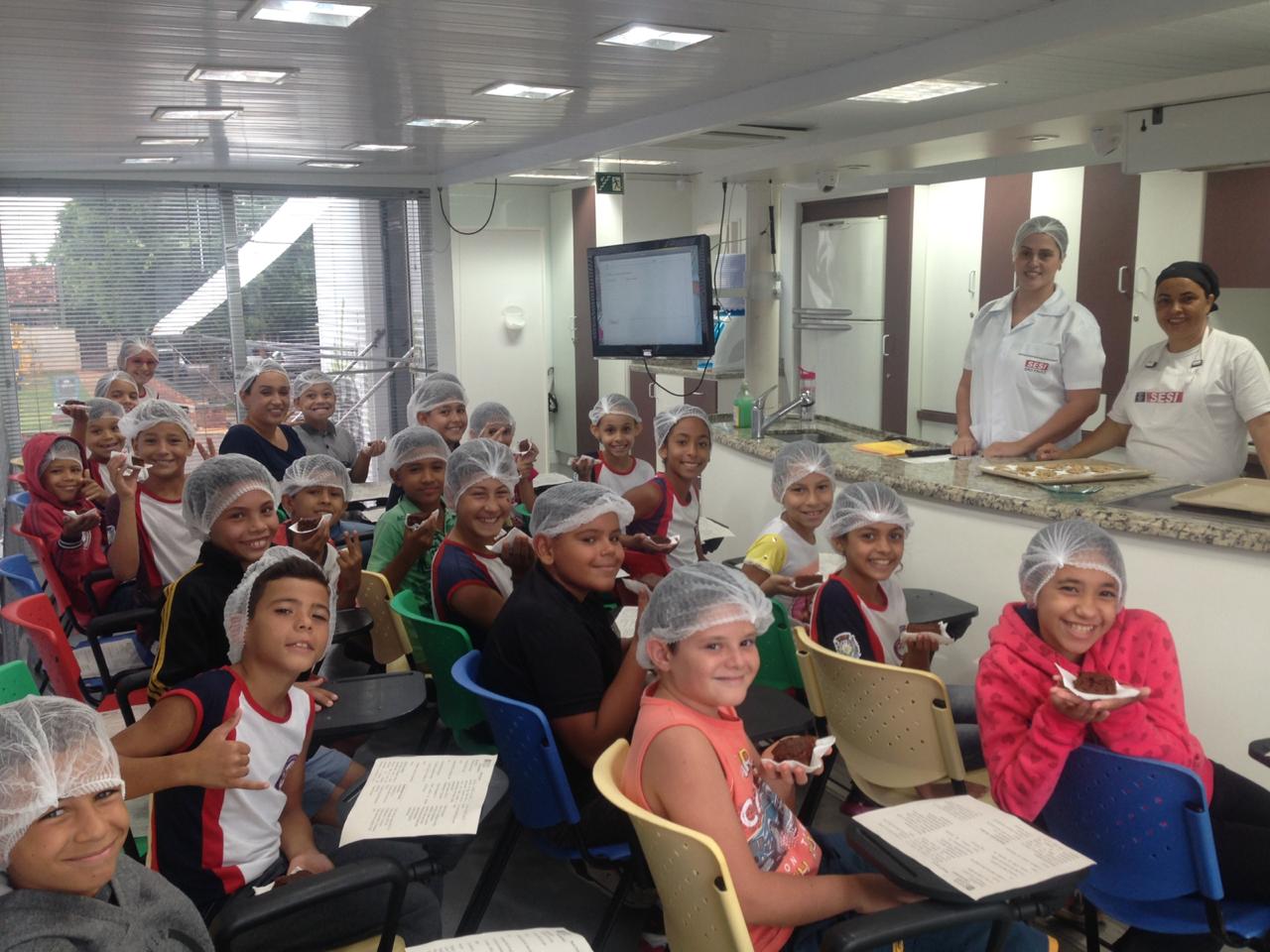 Na terça-feira, dia 12 de fevereiro, crianças de 10 e 11 anos puderam aprender receitas especiais, como bolo "choco monkey" e hambúrguer do mar, dentro de uma cozinha móvel em Anhumas/SP. Legal, né?! A ação é uma iniciativa da prefeitura da cidade, juntamente com o SESI Presidente Prudente, por meio da Unidade Móvel de Vida Saudável do SESI-SP.