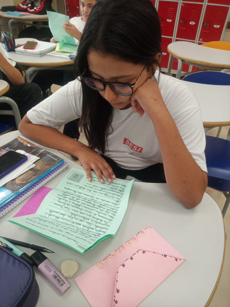 Quando foi a última vez que você escreveu uma carta de próprio punho? Pensar no assunto, colocar as ideias no papel, preparar o envelope e depois postar. Foi essa a experiência que os alunos da Escola Sesi de Presidente Prudente, no Jd. Vila Real, e da Escola Sesi de Presidente Epitácio puderam vivenciar. O projeto Meu Amigo Postal foi inspirado em uma atividade realizada durante o Saber em ação, processo de formação dos professores da rede Sesi-SP, e propôs aos estudantes dos 7º anos da escola de Prudente que produzissem uma carta com uma narrativa autobiográfica que foi enviada aos alunos do 6º e 7º ano da escola de Epitácio, que posteriormente responderam.