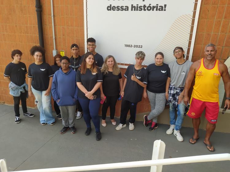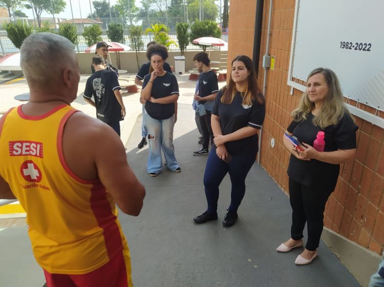 Os alunos puderam conversar com o guarda-vidas Silvio Marcolino, colaborador do Sesi a 37 anos, e foram acompanhados pela professora Dulcirlei Sorrilha Rampani, que dá aulas de Geografia na escola estadual. Dulce, como é carinhosamente chamada, está orientando os estudantes na produção de um Mapa Falante dentro da temática da cartografia social e afetiva. “Esse mapa vai reunir as potencialidades e problemas do entorno da escola, em especial da Vl. Furquim, sob o ponto de vista dos alunos. O relato do Silvio foi muito importante, pois nos trouxe um pouco da história do local e também da afetividade dele com o seu trabalho no Sesi”, pontua a docente.